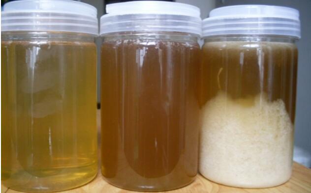 2、液體部分顯得混濁,因為蜂蜜中含有蛋白質、花粉、膠質。假蜂蜜不但泡沫少、容易消退,液體部分也很清澈。