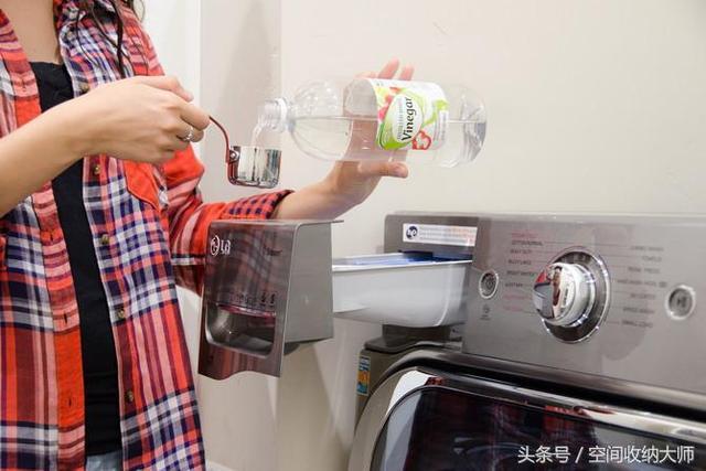 倒入一些白醋,約洗衣液瓶蓋的1/2,慢慢等待洗衣機的洗滌~~之後你就能享受無靜電、不起毛、柔軟的衣服觸感了!