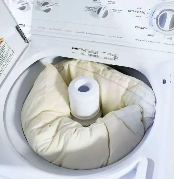 第三步:將枕頭放入洗衣機清洗。注意,枕頭一定要順著滾筒放置,避免疊放,以防洗不幹凈,清洗過後曬乾即可,枕頭和新的一樣柔軟又乾淨!