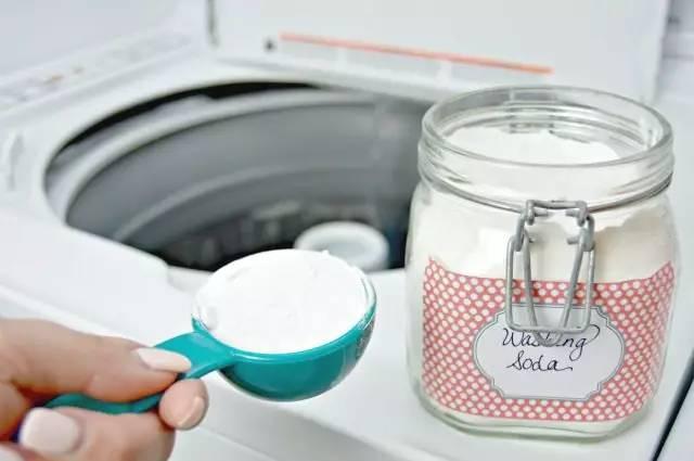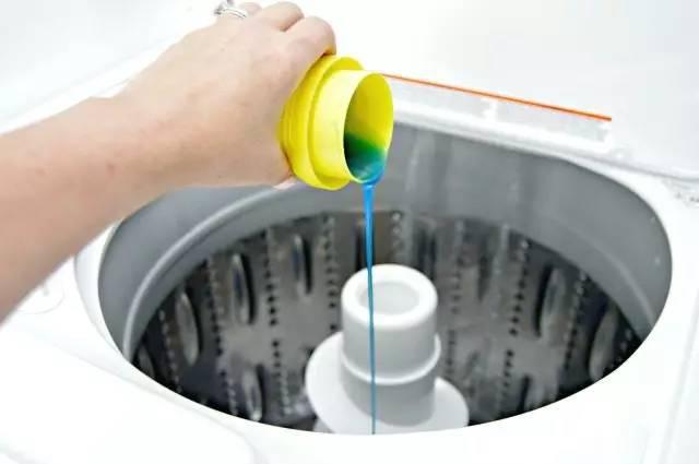 第二步:將洗衣粉或洗衣液配上漂白水和少許硼砂攪拌均勻,倒入洗衣機中。
