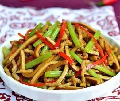 原料:豆腐乾、芹菜、鹽、味精、香油、油、白糖