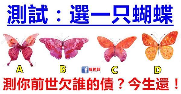 心理測試:4只蝴蝶你最喜歡哪只?測前世你欠誰債今生一定要還?