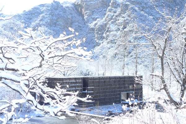 冬季萬物蕭索,一片白色蒼茫,書屋和自然融為一體。