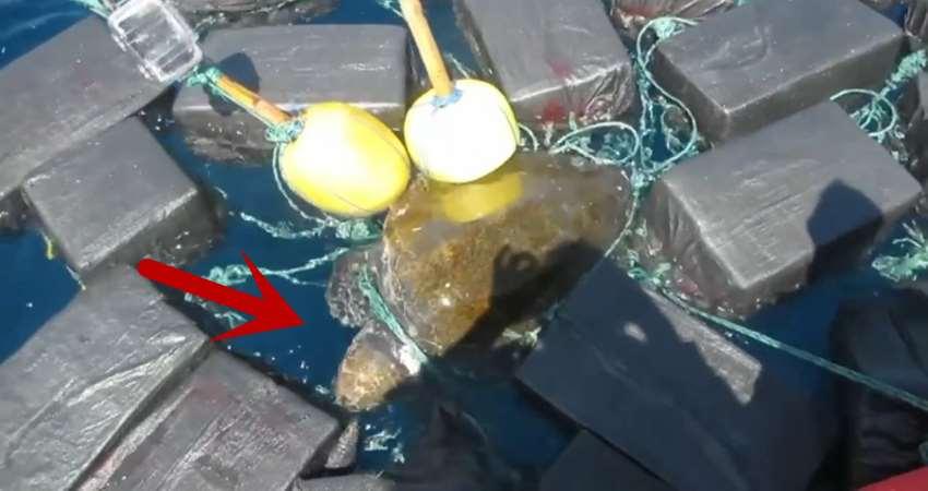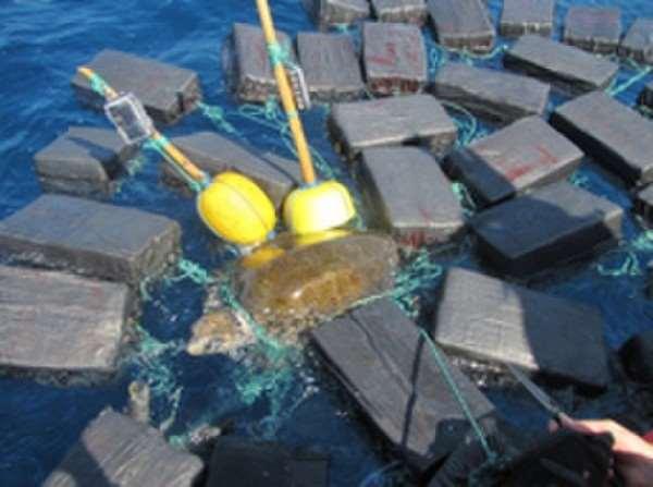 隸屬美國海岸防衛隊的西提斯巡邏快艇(Cutter Thetis)在執行為期68天的緝毒任務時,在東太平洋地區發現了一隻赤蠵龜,這隻海龜全身都被綠色的粗繩纏住,而這些綠色繩子上綁著的,居然是一包又一包的古柯鹼。
