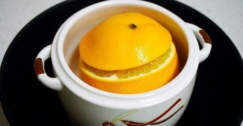 4、然後把橙子放入碗中,蓋上頂部切下的橙子,蒸鍋上汽後蒸15分鐘。