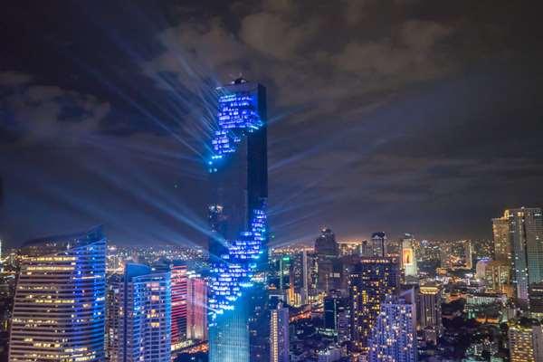 夜幕降臨時,「MahaNakhon」的燈光格外美麗,從遠處看甚至有一種神聖的感覺,美麗的曼谷城市都成為了它的陪襯,而這棟高樓也成了曼谷城市最新的景點和打卡標誌。