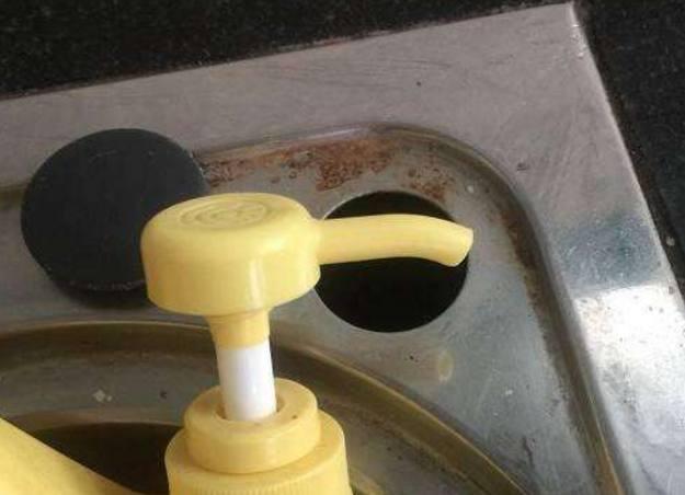 很多朋友都會把清潔劑放在水槽的洞旁邊,這個洞口和清潔劑的大小差不多,把清潔劑放在這裡正好完美。