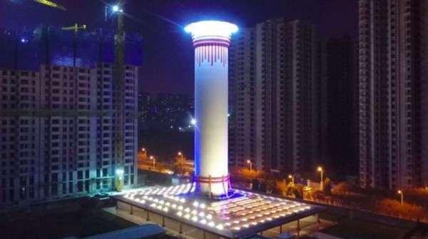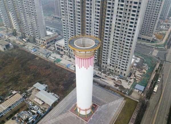 這座「空氣淨化塔」在2016年5月完成,當初建造的願景是濾除空氣中的PM2.5,降低空汙對人類造成的危害,運作的原理是,讓骯髒的空氣流入塔底,透過「太陽能加熱」使空氣膨脹上升,經過塔內部的濾靜設施,然後從塔的頂端留出清新乾淨的空氣。
