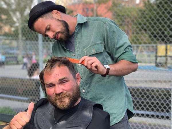 每到一個新的地方,新的城市,他都會去尋找流浪漢,免費為他們剪頭髮,傾聽他們的故事,並分享到網路上。