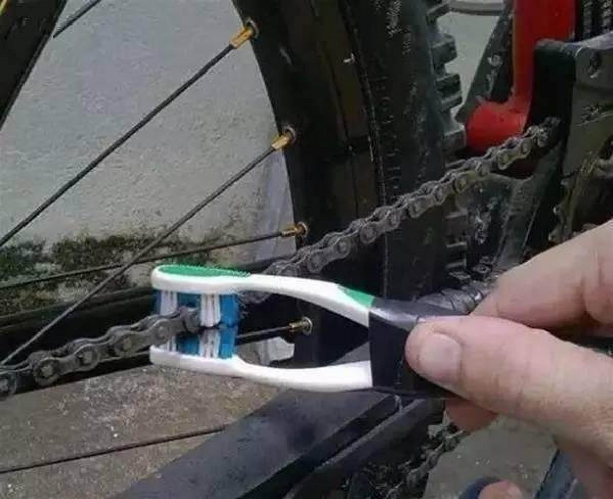 看見車鏈髒到不忍直視是不是看不下去了,兩個牙刷綁在一起,事半功倍,清洗的乾凈極了。