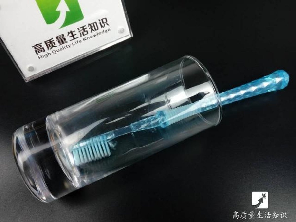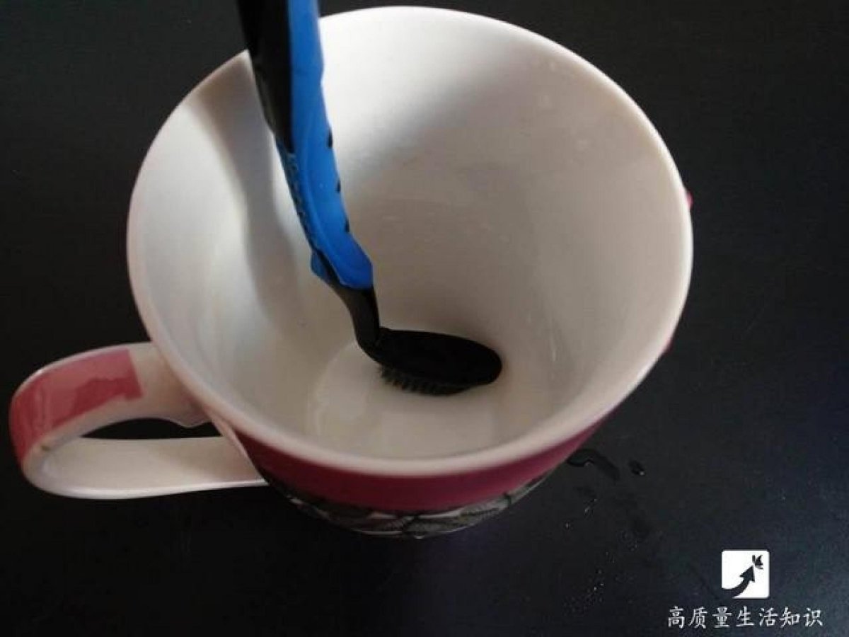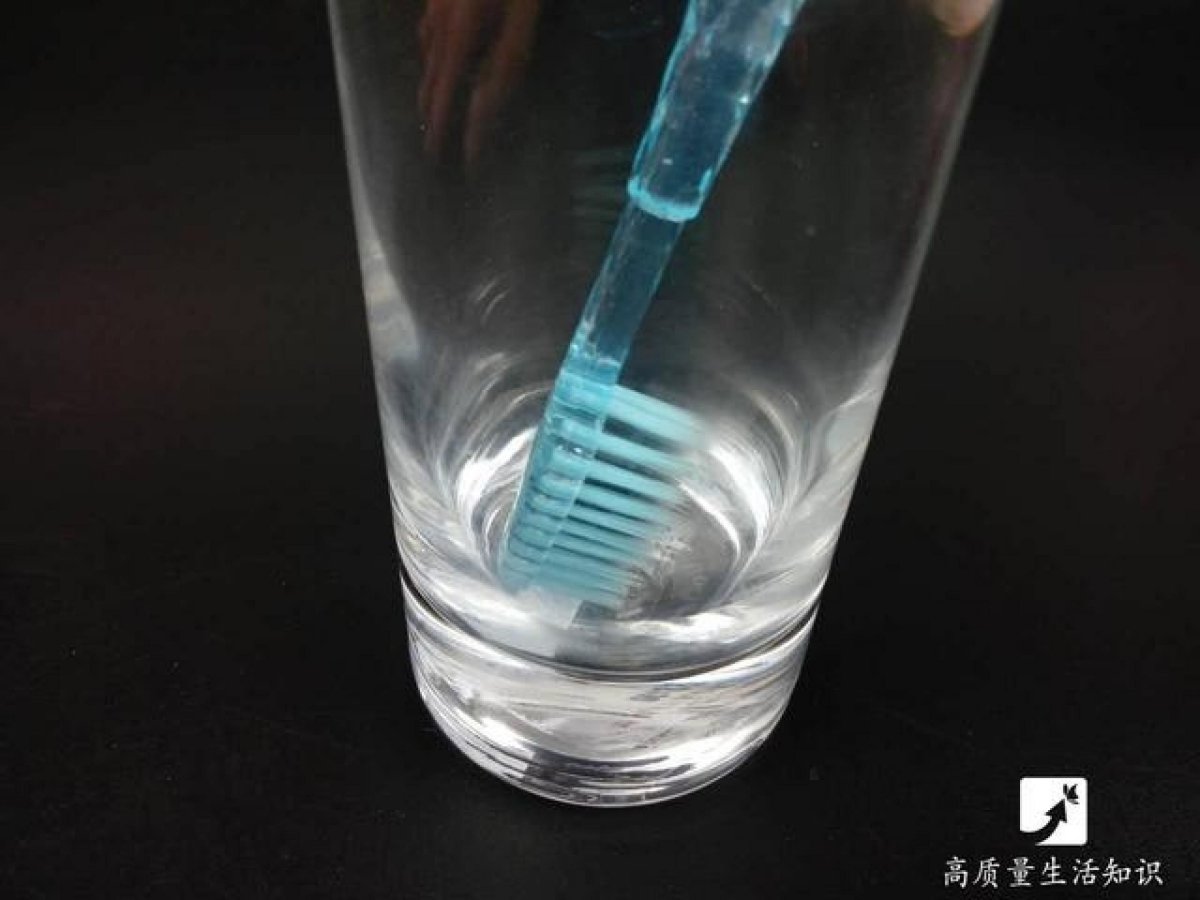 彎曲後的牙刷 用來清洗杯子底部, 非常方便又乾凈, 刷洗無死角。