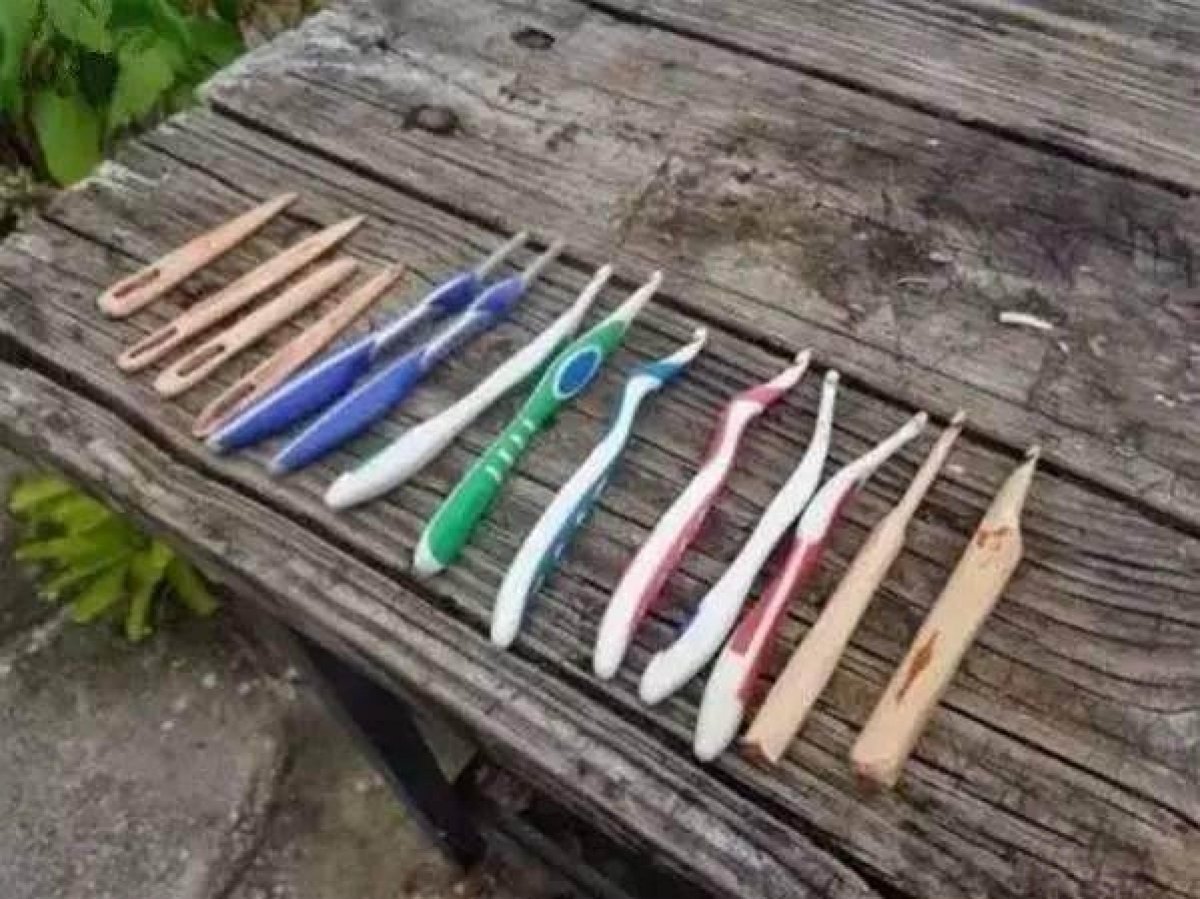 拔完毛的牙刷顯得光潔了很多,刷毛沒什麼用了,可以直接扔掉。