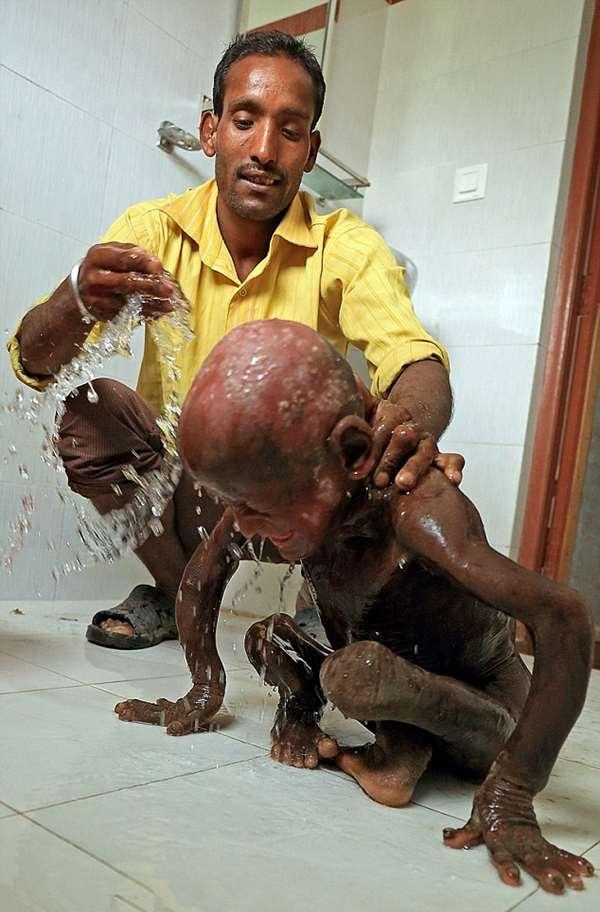 這種魚鱗廯不僅無法醫治,在醫療資源落後的尼泊爾更是困難,尤其是卡穆里全家收入每個月只有65美元(約新台幣1900元),要替兒子治療成為家裡經濟最沉重的負擔,因此卡穆里的父母只能看著兒子受苦什麼也不能做,放任兒子的病情持續惡化下去。