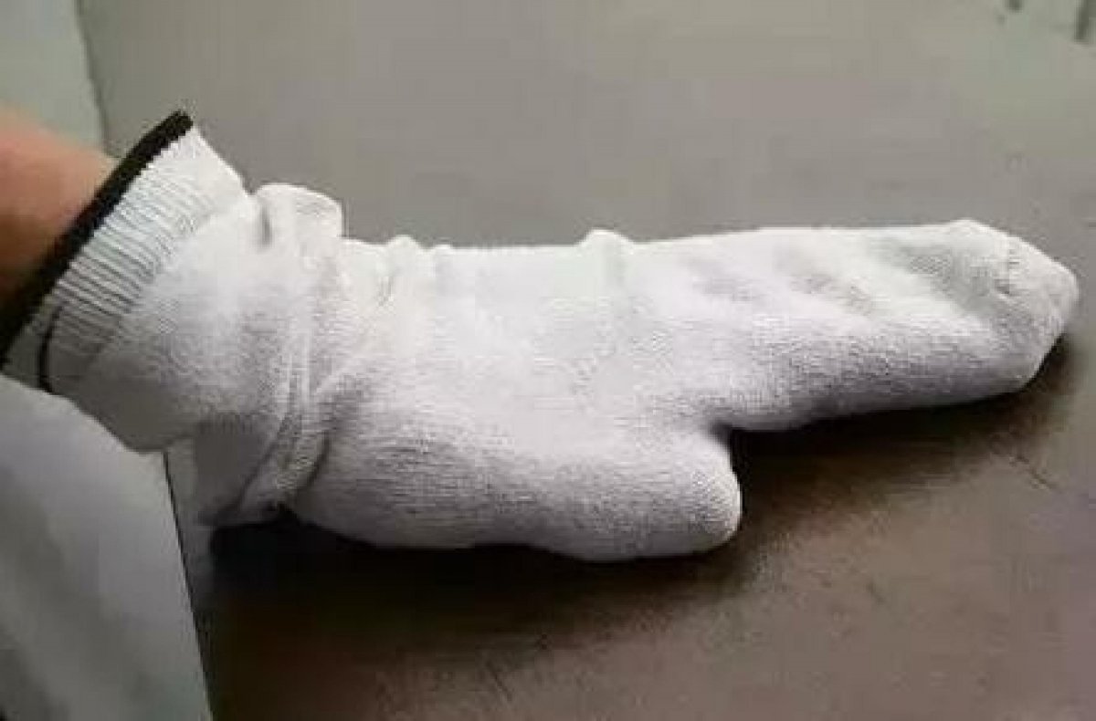 將襪子直接套在手裡搞衛生,既省下了手套的錢,也省下了抹布的錢。
