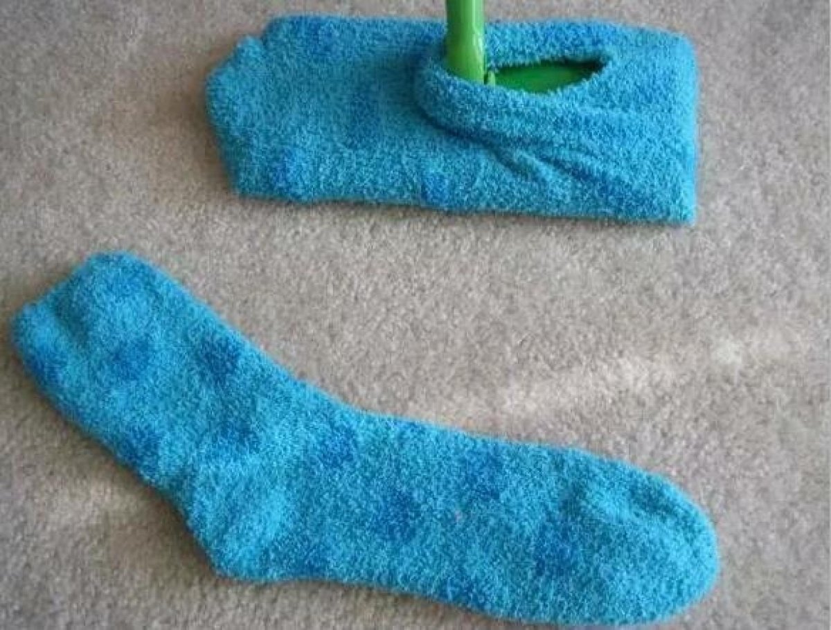 將襪子直接套在掃把上,這樣一來,清理垃圾更容易。