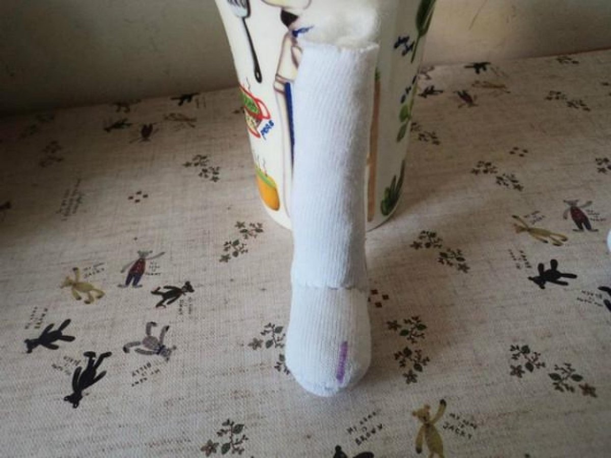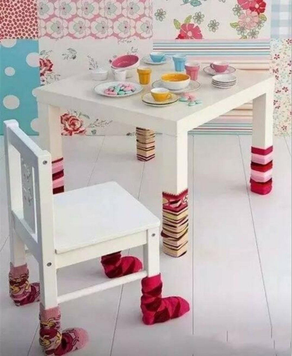 把舊襪子直接套在桌腳凳子腳上,拉桌子不再有聲音,家裡老人小孩中午睡覺不被驚擾。