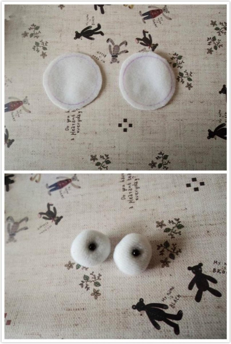 15.疏縫,抽緊,塞棉,加上小黑珠。