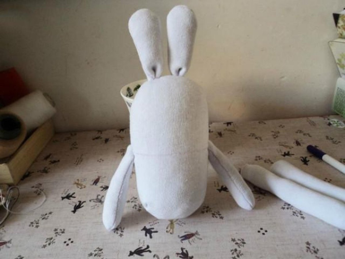 耳朵只填少量的棉花,太多的棉花不太好摺疊。