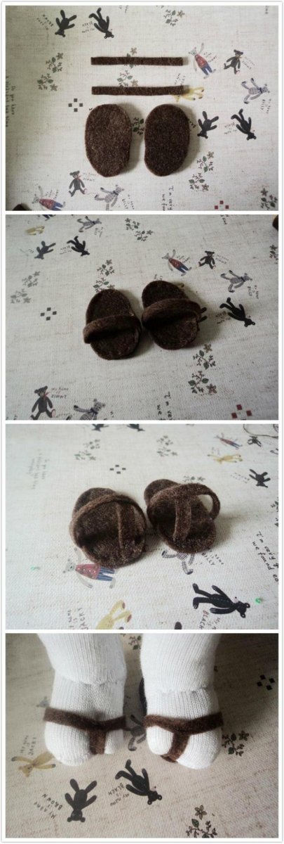褐色深色的布料作為小物件如拖鞋鼻子嘴巴之類。