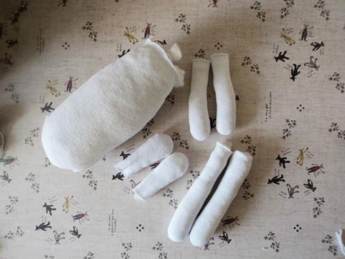 手的上臂用的棉花也要少些,這樣比較服帖。