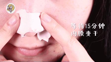 在鼻子上貼15分鐘,等待雞蛋內膜變幹,然後輕輕揭掉,很多黑頭就能隨之去除啦~