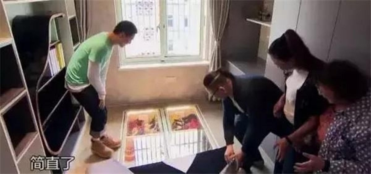 鋼化玻璃的下沉式鞋櫃通透明亮,足以滿足男主播展示他收藏的50雙鞋子的願望,內置式的抽風機也能保證鞋櫃內部的通風乾燥。