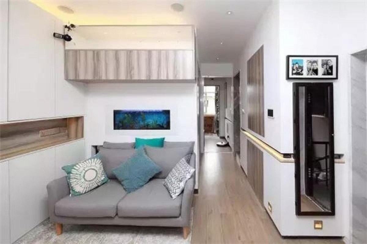 設計師將原本堆滿雜物的客廳,麵積上增加到12平方公尺(3.6坪),添加沙發、折疊餐桌等軟裝家居,豐富功能空間,原本被閒置的鋼琴也成為了天然置物架。