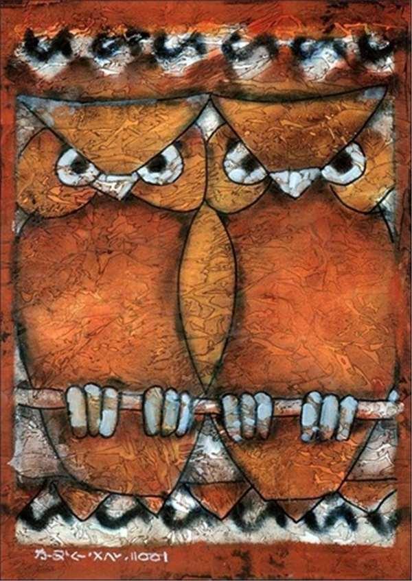 他筆下的貓頭鷹,經常睜一隻眼閉一隻眼,人生不就是這樣嘛!