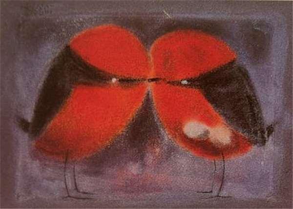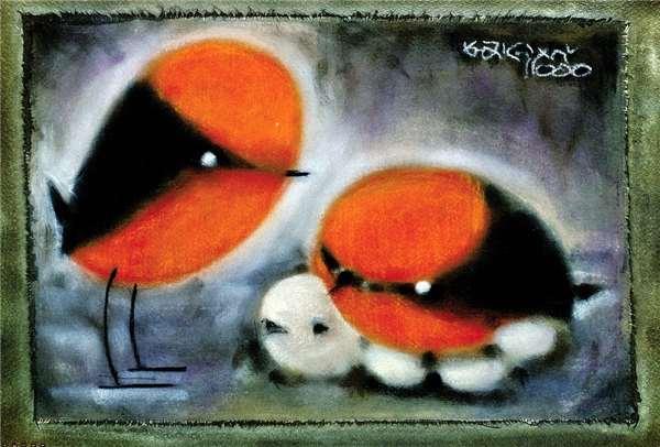 在他的作品中最常見的形像是一隻婆憂鳥,他為牠取名其其,這隻小鳥的誕生源於小時候祖母給他講的一個故事。
