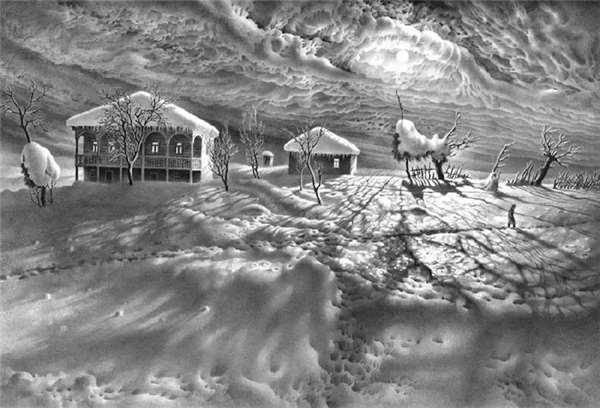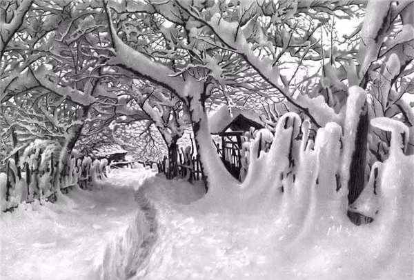 居然連普丁都被騙了!對,這些雪景不是拍出來的,全是用一支普通的鉛筆劃出來的。