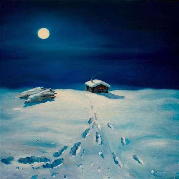 偶爾,他也會嘗試畫一幅彩色的雪景。