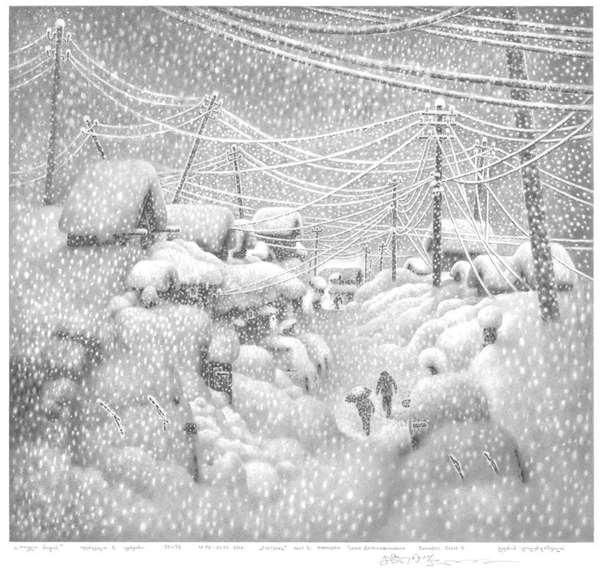 一晃36年過去了,Guram作過的畫何止上萬張,用掉的鉛筆加起來應該能堆滿一間倉庫了,去過很多城市,要說Guram最摯愛的,還是雪景。