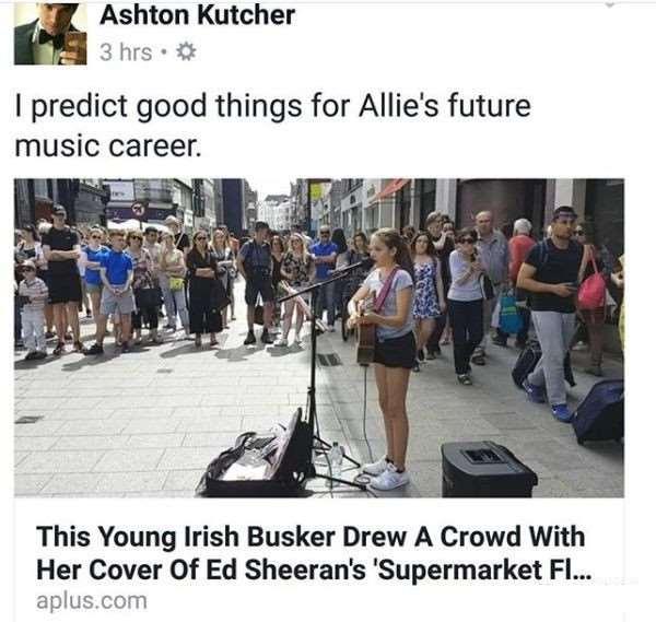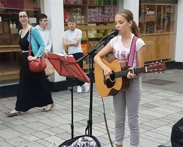 去年6月,她在街頭演唱紅髮艾德的《Supermarket Flowers》,父親同往常一樣,把她在街上的演唱影片錄下來,發到社交網路。