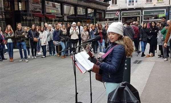 漸漸地,都柏林街頭來來往往的路人,開始注意到這個風雨無阻,眉清目秀的小女孩,越來越多的人,被她迷人的嗓音所吸引,駐足觀看。