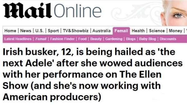 最新一期的艾倫秀上,一個穿破洞牛仔褲的小女孩驚艷了所有觀眾,更是被媒體冠上了「下一個愛黛兒」的名頭。
