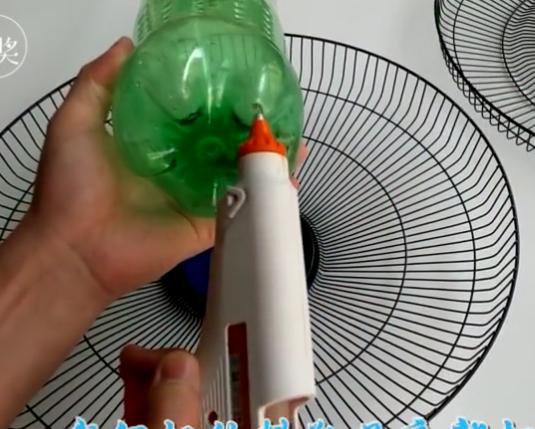 然後,用「膠槍」在飲料瓶的底部打上膠