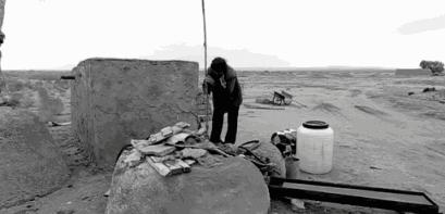 那塊在地裡突起的土牆就是她的家,放眼四周,什麼也沒有,除了沙還是沙。