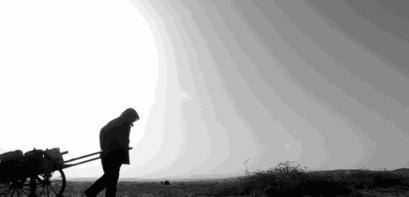 裝滿水的人力車,劉奶奶要拉著它去給種在邊界的梭梭澆灌,因為腿疾,車身搖搖晃晃,裝在桶裡的水時不時會被灑出來。