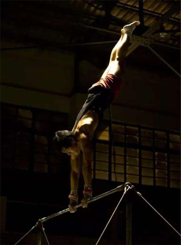 當別人拍完戲都去放鬆娛樂的時候,他卻在鞍馬、吊環面前揮汗如雨,下器械,練後空翻...