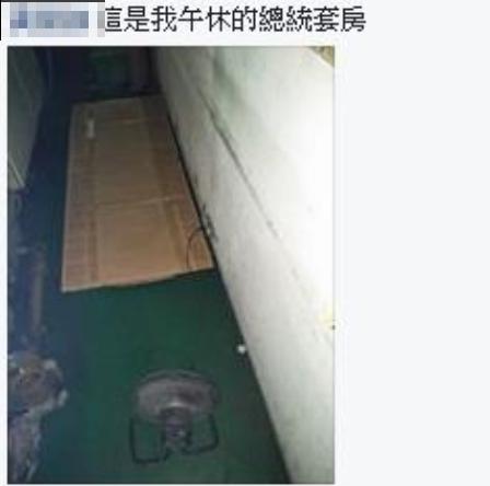 也有同樣在工地打拚的網友,心有同感地PO出自己在工地午休的照片,最常見的「寢具」就是黑色大塑膠袋以及紙箱紙板,也有人表示「每日買報紙,午休吃飯可以看,午睡時鋪地上,冬天蓋報紙也很保暖、防風」、「新工地一進場首要認務就是找紙箱、紙板」、「有垃圾袋禦寒就不錯」。