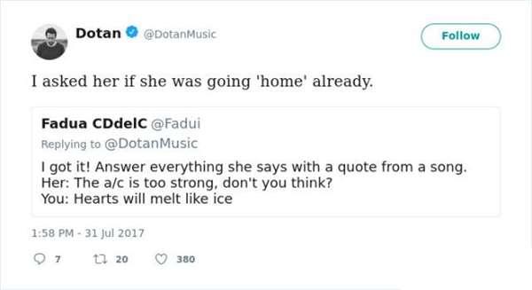網友:哈哈!這簡直是我看過最搞笑的貼文!你幹嘛不直接跟著唱,讓她意識到你是誰?