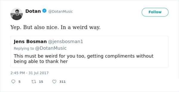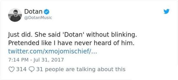 Dotan饒有興趣地開始跟她交談了起來,可是聊了沒多久他就注意到,其實這個女孩並沒有認出自己!