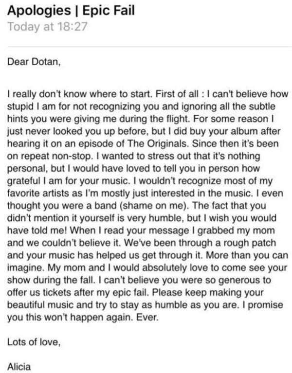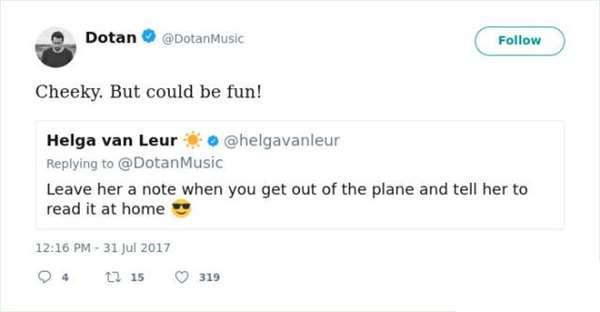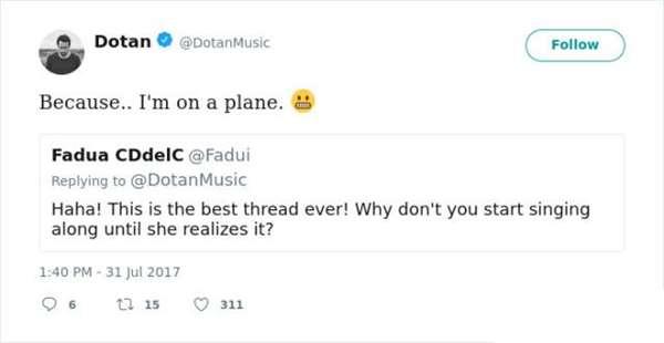 今天我們要說的這個叫Alicia的妹子,就碰到了這樣一件事,飛機上鄰座就是自己的偶像,一位叫Dotan的歌手。