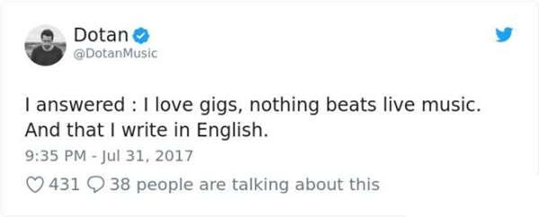 31歲的荷蘭唱作家Dotan正在坐飛機時,偶然間注意到隔壁的女生正在聽自己的專輯。