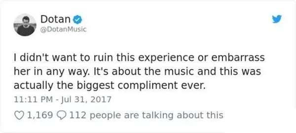 不過她一點事沒有,倒是差點讓自己的偶像Dotan暈過去,還引得Dotan全程在推特上直播起了他和這位天真女粉絲的故事。