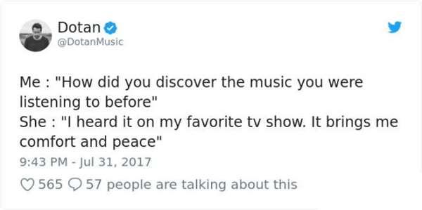 她:我在我最喜歡的一個電視節目上聽到過,感覺很療癒。