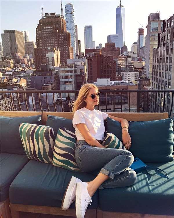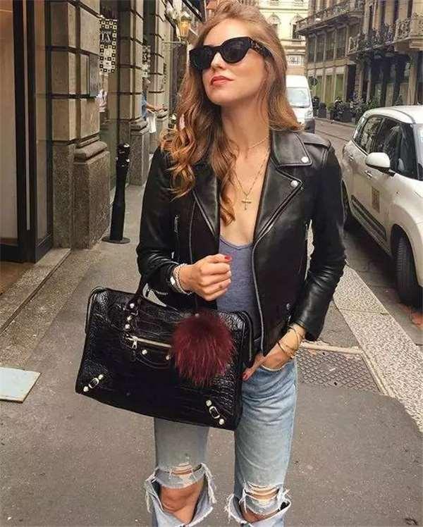 她形容自己的穿衣風格是「cool&chic」,最不能少的衣櫥單品是一隻具有設計感的手袋,一件漂亮的皮夾克,以及一條vintage牛仔褲。