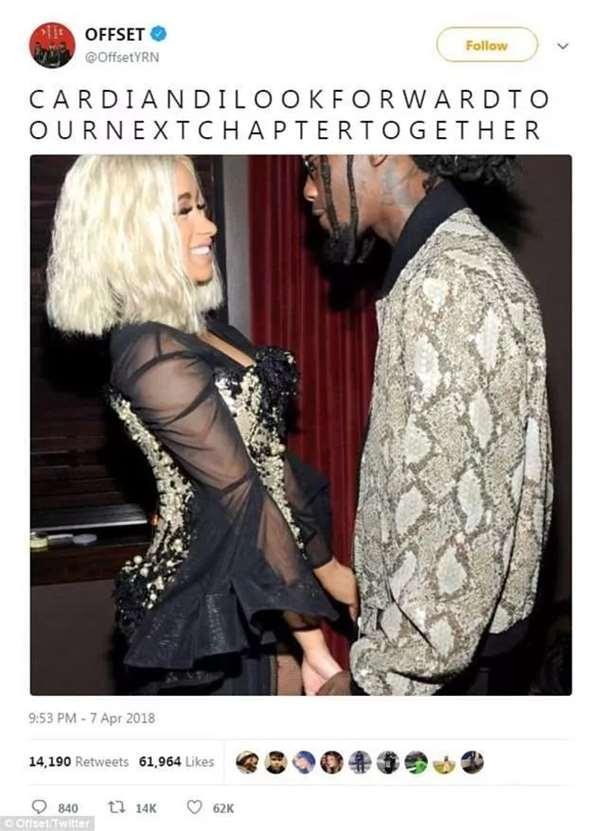 而孩子的老爸是饒舌歌手Offset,之前兩個人鬧過撕逼、說過分手,男方還不止一次出過軌,但最後還是選擇在一起,要開啟二人的新篇章。