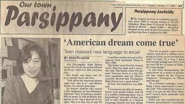 雖然英語的障礙讓她很不適應,但天生愛學習的她刻苦努力,喜歡鑽研,高中畢業時她申請了一大批學校,普林斯頓大學幾乎給了她全額獎學金,她也因此登上了當地的報紙。