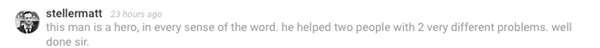 「這個男人簡直是一個英雄,他幫助了兩個處於完全不同情況下的人。」